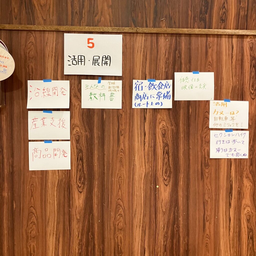 屋台ごとに集まった意見を貼り出し、最後に全員で内容を共有した。